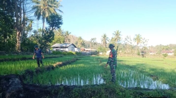 NTT-Sumba Timur.Dalam upaya mendukung ketahanan pangan dan meningkatkan hasil produksi pertanian, Babinsa Koramil 02/Rindi Umalulu Kodim 1601/Sumba Timur, Praka Gusnanda, turut serta mendampingi para