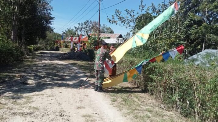 Semarakkan HUT RI Ke-80, Babinsa Kodim 1621/TTS Bantu Warga Pasang Bendera dan Umbul-Umbul