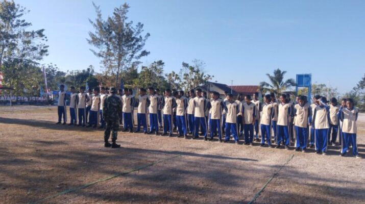 Babinsa Koramil 01/ Lewa dan Personel Polsek Latih Paskibra di Lapangan Kahali