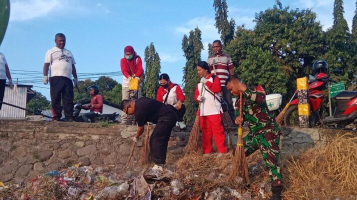 NTT-SIKKA Babinsa Koramil 1603-01/Alok Kodim 1603/Sikka, Praka Aris Wijayanta, melaksanakan kegiatan gotong royong untuk membersihkan sampah di tepi kali mati di kelurahan Kabor, Kabupaten