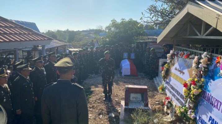 Kupang, NTT – Upacara pemakaman militer bagi Almarhum Prada Lucky Chepril Saputra Namo digelar khidmat di TPU Mapoli (Kapadala-Airnona), Kelurahan Air Nona, Kecamatan Kota