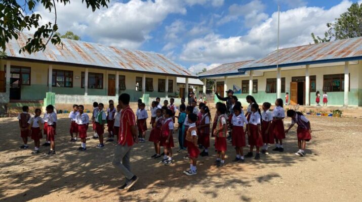 Belu – Pos Motaain berikan pelatihan dasar PBB dan gerak jalan kepada siswa SDN Motabenar, Desa Silawan, Kec Tasifeto Timur, Kabupaten Belu. Sabtu (09/08/2025).