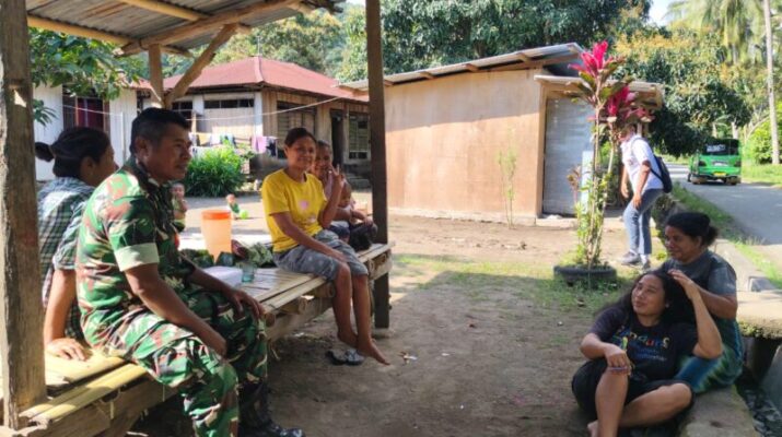 Ende, Babinsa Kecamatan Ndona, Kopda Ahmad Sajani, melaksanakan kegiatan Monitoring, Komunikasi Sosial (Komsos), dan Pengamanan Wilayah (Pamwil) bersama masyarakat Desa Nganesa pada Minggu pagi