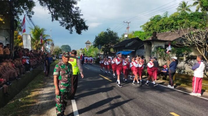KARANGASEM – Babinsa Desa Sangkan Gunung Koramil 1623-04/Sidemen Serka I Nengah Sukarta melaksanakan pengamanan kegiatan jalan santai dalam rangka peringatan HUT kemerdekaan RI ke-80