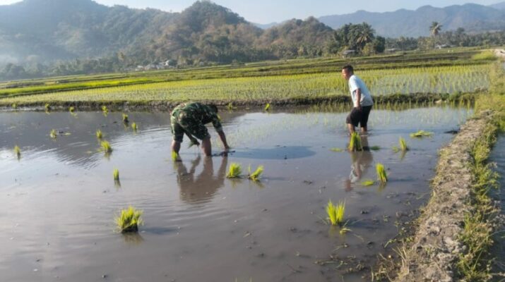 Ende, Babinsa Koramil 1602-04/Maurole, Praka Ramdani G. Utomo, kembali menunjukkan komitmennya dalam mendukung ketahanan pangan dan mempererat hubungan dengan masyarakat melalui kegiatan tanam padi