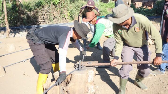 Dompu NTB – Babinsa Desa Kwangko, Koramil 1614-06/Manggelewa, Koptu Arfian Yuliansyah, pada Selasa (12/8/2025) terjun langsung membantu masyarakat Dusun Pulo Bajo, Desa Kwangko, dalam
