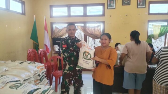 NTT-SIKKA Babinsa Koramil 1603-01/Alok Kodim 1603/Sikka melaksanakan pendampingan pembagian bantuan pangan beras di Kelurahan Kota Baru, Kecamatan Alok Timur, Kabupaten Sikka. Kegiatan ini dilaksanakan