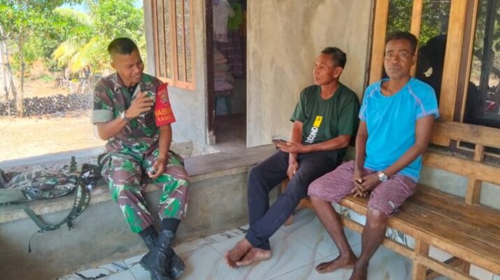 Rote Ndao – Babinsa Koramil di wilayah Kecamatan Rote Barat Daya, Praka Noh Nubatonis, melaksanakan kegiatan komunikasi sosial (komsos) dan monitoring wilayah binaan di