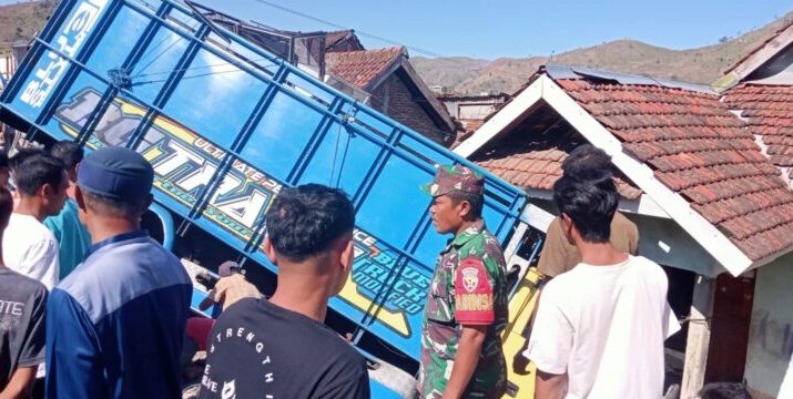 Truk Ngantuk Hantam Pagar dan Motor, Babinsa Bergerak Cepat