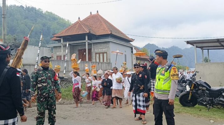 Bangli – Dalam rangkaian Upacara Piodalan yang jatuh pada tanggal 20 Agustus 2025, Babinsa Desa Landih (Serma I Komang Juni Suantara) bersama Bhabinkamtibmas Desa