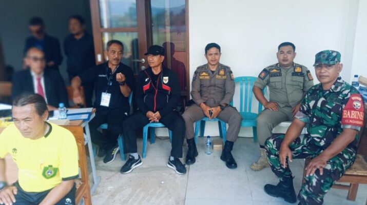 KARANGASEM – Babinsa Kelurahan Padangkerta Koramil 1623-01/Karangasem Peltu I Wayan Sumadra bersama instansi terkait melaksanakan pengamanan kejuaraan sepak bola piala Soeratin U-17, di Lapangan