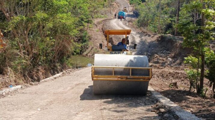 Satgas TMMD 125 Kodim Belu Lakukan Proses Pemadatan Jalan Dengan Alat Berat