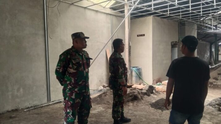 KARANGASEM – Danramil 1623-06/Selat Kapten Inf. Marjuli meninjau langsung proses pengerjaan bangunan Dapur Sehat Makan Bergizi Gratis (MBG) yang dikelola oleh Yayasan Sinar Intan