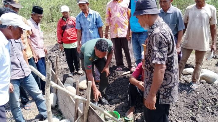 MANGGARAI BARAT – Babinsa Koramil 1612-06/Lembor, Sertu Yosep Yohan Diaz, menghadiri acara peletakan batu pertama pembangunan kantor Desa Persiapan Siru Langke Rembong. Acara bersejarah