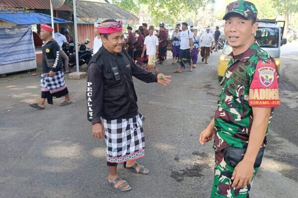 Sinergi Babinsa, Pecalang, dan Bhabinkamtibmas Amankan Upacara Adat di Desa Petemon