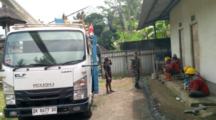 Cegah Bahaya, Babinsa dan PLN Sigap Tangani Tiang Listrik Miring di Desa Kelusa