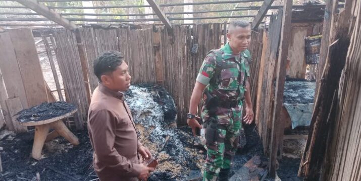 Rote Ndao – Babinsa Koramil 1627-01/Baa, Praka M. Feby Athaufiqunafsi melaksanakan kegiatan monitoring wilayah sekaligus merespon cepat peristiwa kebakaran dapur rumah milik Bapak Yeskiak
