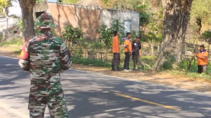 Sinergi Babinsa, BPBD dan Dishub Amankan Jalan Umum di Taliwang