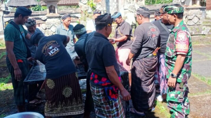 Bangli – Babinsa Desa Binyan, Serka I Ketut Yohanes, melaksanakan pendampingan sekaligus pengamanan kegiatan adat Pengerapian bertempat di Pura Dalem Desa Binyan, Kecamatan Kintamani,