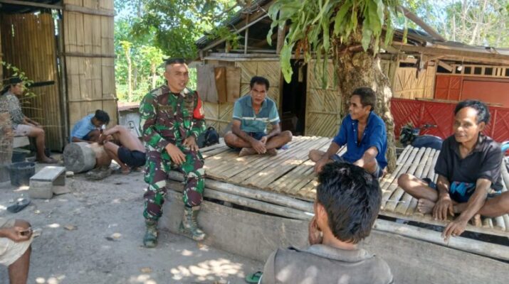 SUMBA BARAT – Babinsa Koramil 02/Walakaka Kodim 1613/Sumba Barat, Sertu Arifudin, melaksanakan komunikasi sosial (Komsos) bersama masyarakat di Desa Harona Kalla, Kecamatan Laboya Barat,