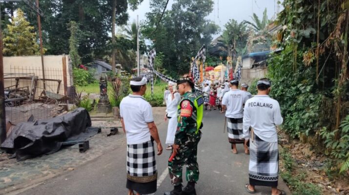 Peran Aktif Babinsa Jaga Kamtibmas Iring-iringan Ida Betara di Desa Melinggih