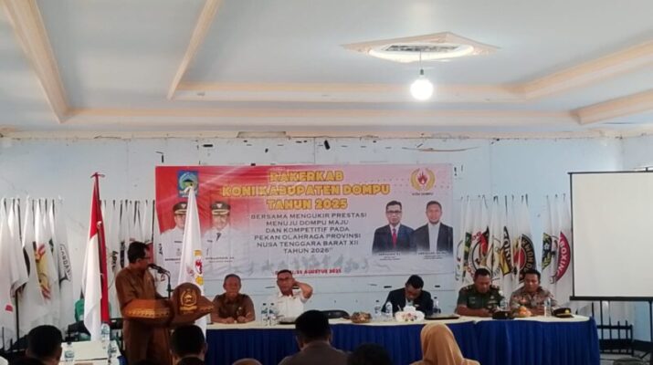 Dompu NTB – Komite Olahraga Nasional Indonesia (KONI) Kabupaten Dompu menggelar Rapat Kerja Kabupaten (Rakerkab) Tahun 2025 pada Senin (25/8/2025), bertempat di Gedung PKK
