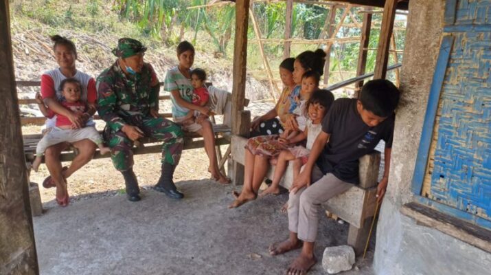 SUMBA BARAT – Babinsa Koramil 02/Walakaka Kodim 1613/Sumba Barat, Sertu Arifudin, melaksanakan komunikasi sosial (Komsos) bersama masyarakat di Desa Harona Kalla, Kecamatan Laboya Barat,
