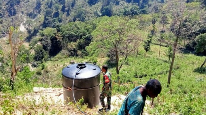 TTS _ Upaya membantu kesulitan masyarakat di desa binaan, Bintara Pembina Desa (Babinsa) Koramil 01/Kota So’e Kodim 1621/TTS Serda Viktorandus Tefa bersama masyarakat melaksanakan