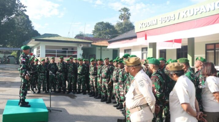 NTT-KUPANG, — Komando Distrik Militer (Kodim) 1604/Kupang kembali melaksanakan Upacara Bendera Mingguan sebagai bentuk pembinaan kedisiplinan, loyalitas, dan penanaman jiwa nasionalisme bagi prajurit dan