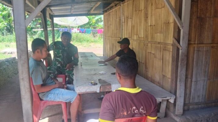 Maurole – Dalam rangka menjalankan tugas pembinaan teritorial, Babinsa Koramil 1602-04/Maurole, Pratu Yudha Santoso, melaksanakan kegiatan Komunikasi Sosial (Komsos) dan Pengamanan Wilayah (Pamwil) di