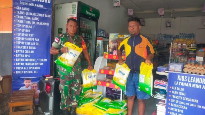 Gerakan Pangan Murah, Babinsa Sertu Fransiskus Alfonsus Bantu Penjualan Beras SPHP di Rote Ndao