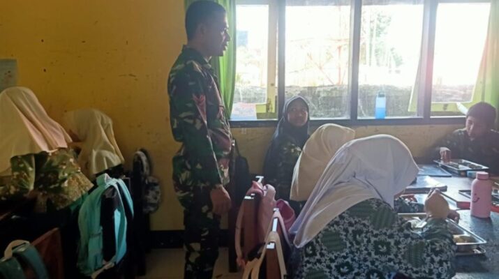 Babinsa Kodim 1628/Sumbawa Barat Kawal Program Makan Sehat Bergizi untuk Ribuan Pelajar