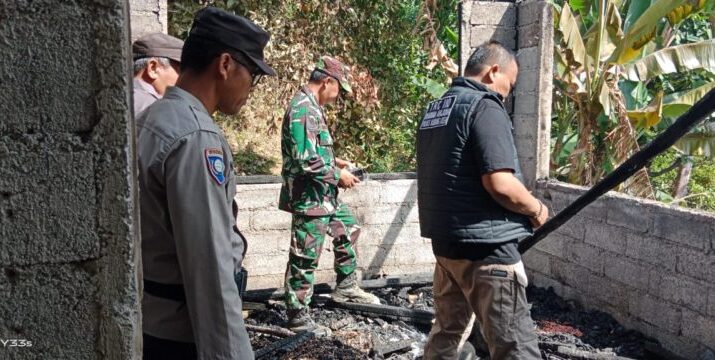 KARANGASEM – Babinsa Desa Ban Koramil 1623-08/Kubu Sertu I Gede Irawan Sudarsana bersama Bhabinkamtibmas melaksanakan peninjauan lokasi kejadian kebakaran bangunan dapur, di Dusun Manik