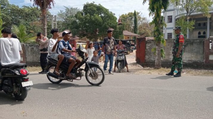 Ende, – Dalam rangka menjaga keamanan dan ketertiban selama pelaksanaan ibadah perayaan Misa Minggu, Babinsa Koramil 1602-04/Maurole dan Babinkamtibmas Polsek Maurole melaksanakan pengamanan di