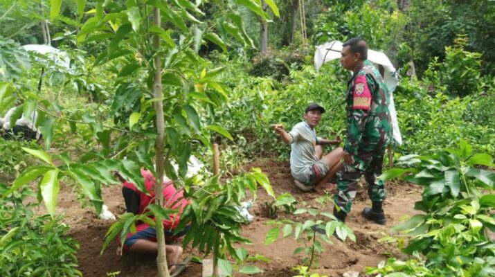Julah – Babinsa Julah Koramil 04/ Tejakula Kodim 1609/Buleleng Sertu Made Astrawan Melaksanakan Komunikasi Sosial (Komsos) dengan petani Bibit Buah dan tanaman hias yang