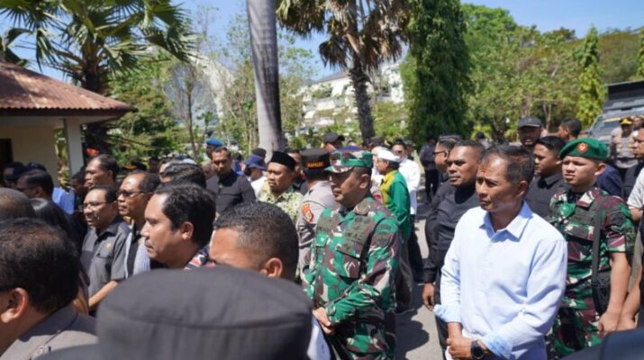 Komandan Korem 161/Wira Sakti Brigjen TNI Hendro Cahyono bersama Gubernur NTT, Ketua DPRD, Kapolda NTT, Kajati NTT, tokoh agama turun langsung menemui ratusan mahasiswa