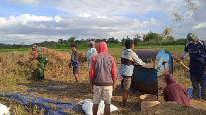 NTT-Sumba Timur.Dalam upaya mendukung program ketahanan pangan nasional, Babinsa Koramil 01/Lewa Kodim 1601/Sumba Timur, Sertu I Putu Suecadana, turut serta membantu petani dalam kegiatan