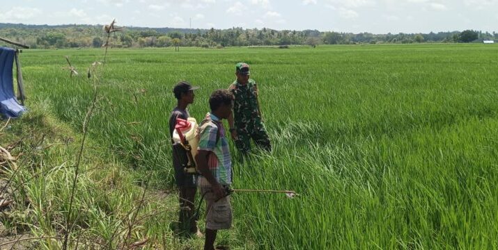 Dukung Ketahanan Pangan, Babinsa Pahunga Lodu Dampingi Petani Kendalikan Hama Padi