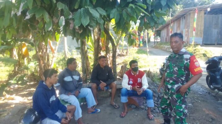 Babinsa Sertu Oka Ardhana Sapa Warga Desa Raburia Lewat Kegiatan Komsos dan Monitoring