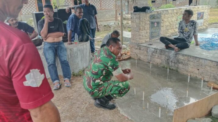 Wujud Kepedulian, Babinsa Kodim 1602/Ende Ikut Doa dan Bantu Pembangunan Makam