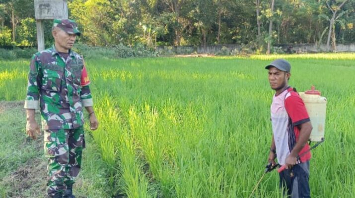 Ende, Dalam rangka mendukung program ketahanan pangan nasional, Babinsa Koramil 1602-04/Maurole, Sertu Densius Berno, melaksanakan kegiatan pemantauan perkembangan tanaman padi sawah di wilayah Kecamatan