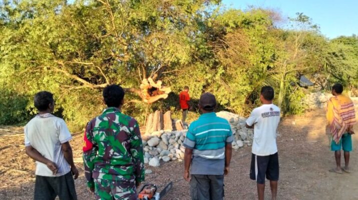 KUPANG – Untuk mendukung serta menyukseskan program pembangunan di Desa Manubelon, Babinsa Koramil 1604-03/Naikliu Serka Lodian Wila Radja bersama Kepala Dusun 3, dan masyarakat