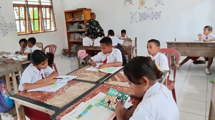 NTT-Kefamenanu., Babinsa Koramil 1618-04/Bisel, Sertu Osorio Soares, hadir di tengah-tengah siswa SDN Lanaus, Desa Lanaus, Kecamatan Insana Tengah, Kabupaten TTU, Rabu 03/09/2025., untuk memberikan