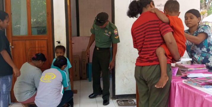 Lembata – Babinsa Koramil 1624-04/Omesuri, Sertu Yakobus Bona, bersama petugas Bidan Desa dan Para Kader, melaksanakan pemeriksaan kesehatan dan penimbangan serta pemberian makanan tambahan