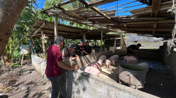 Wujud Kepedulian, Babinsa Landih Ikut Kawal Monitoring Program Ketahanan Pangan Peternakan Babi
