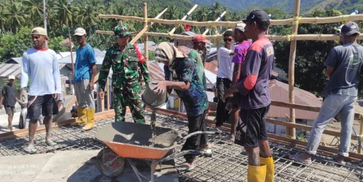 Ndori, Babinsa Koramil 1602-02/Wolowaru, Sertu Muksin, bersama masyarakat Desa Serandori Dusun Ipi, Kecamatan Ndori, Kabupaten Ende, melaksanakan kegiatan karya bakti dan komunikasi sosial (komsos)