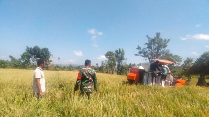NTT-Sumba Timur,Babinsa Koramil 03/Pahunga Lodu Pos Ramil Wulla Waejelu, Kodim 1601/Sumba Timur,Serda Hendrik Hati Waluandja, melaksanakan pendampingan kegiatan panen padi milik Bapak Stepanus Kabita