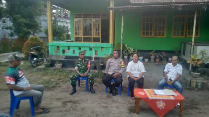 Alor—NTT—,Babinsa Kecamatan Alor Selatan, Serka Welem Botahala bersama Pratu Ikhwan Bukang menghadiri rapat pembentukan panitia Satuan Tugas (Satgas) Perlindungan Perempuan dan Anak tingkat Kecamatan