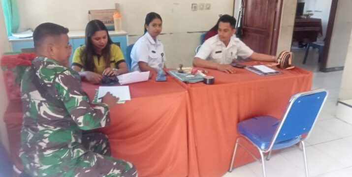 NTT-KUPANG, – Babinsa Kelurahan Bakunase Koramil 1604-01/Kupang, Sertu La Dane, melaksanakan komunikasi sosial (Komsos) bersama pegawai kelurahan guna membahas kegiatan verifikasi program INA KASIH.