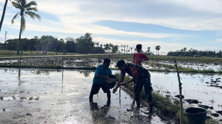 Dukung Ketahanan Pangan, Pratu Ansen Bantu Petani Penyemaian Padi
